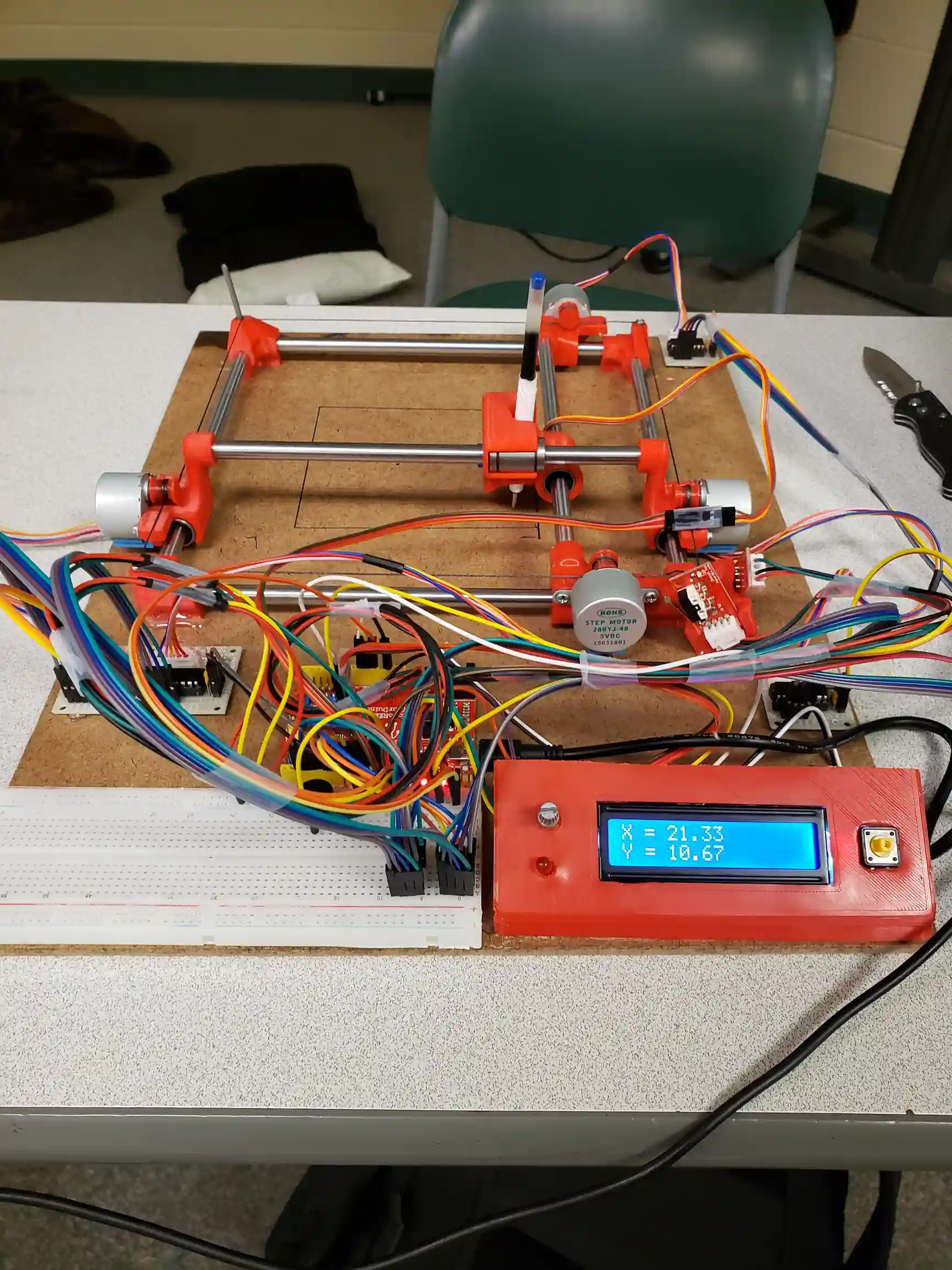 This was the final assignment for my second semester freshman engineering class (IEP 2). Budget given was $20, and my teammates and I decided a pen plotter would be a fun project. Here are some photos mostly of the final results